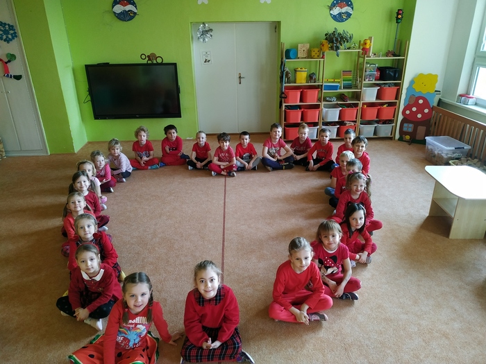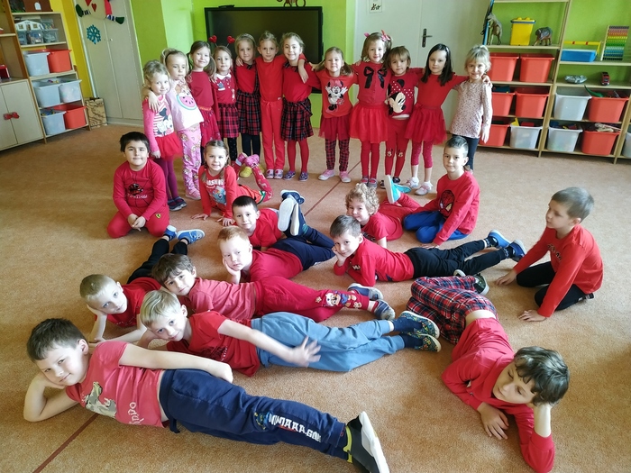 Mateřská škola Komenského 1009 se už od brzkého rána červenala. Děti dorazily oblečeny do červené barvy. A že jich bylo. Někteří dokonce od hlavy až k patě.