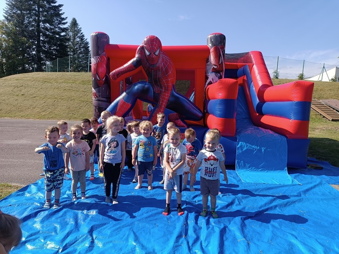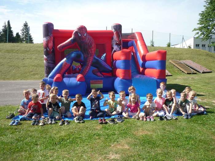 Hned prvním dnem v červnovém měsíci slavíme Den dětí. Již od samého rána bylo v naší mateřské škole rušno a veselo. Děti byly natěšené, jaká překvapení je v tento sváteční den čekají… Ještě před svačinkou vyrostl na naší školní zahradě SPIDERMANOVÝ SKÁKACÍ HRAD. Poté se třídy BERUŠKY, MYŠIČKY A SLUNÍČKA postupně přesunuly na sluncem zalitou zahradu a dostala malé, ledové překvapení v podobě ZMRZLINY.