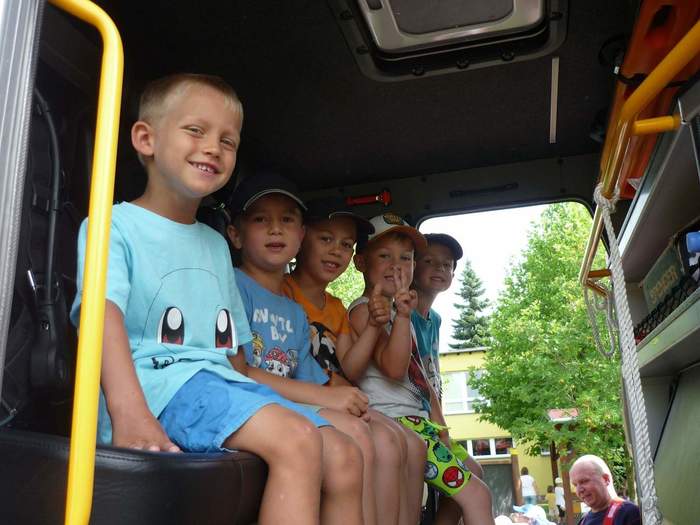 Děti měly možnost si prohlédnout oblečení, hasičské auto. Také si vyzkoušely, jak se sedí za volantem takového auta.