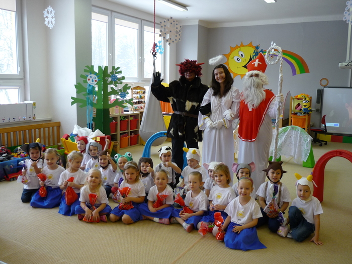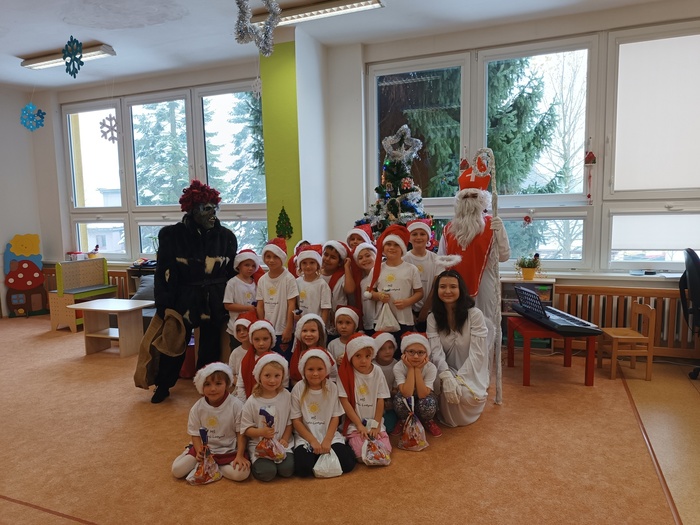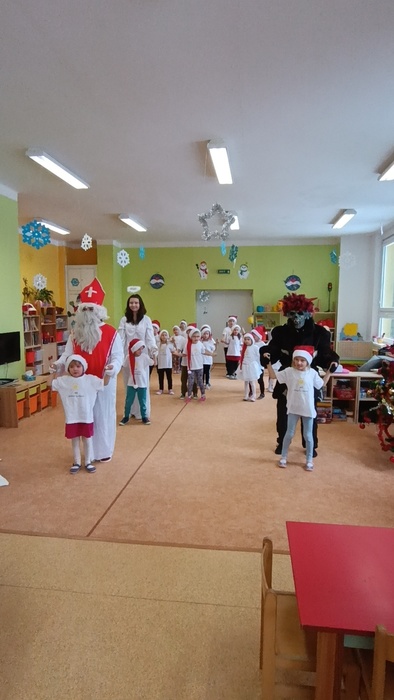 Děti z jednotlivých tříd si připravily vystoupení, zpívaly písničky, recitovaly básničky. Mikuláš děti pochválil za krásné vystoupení.