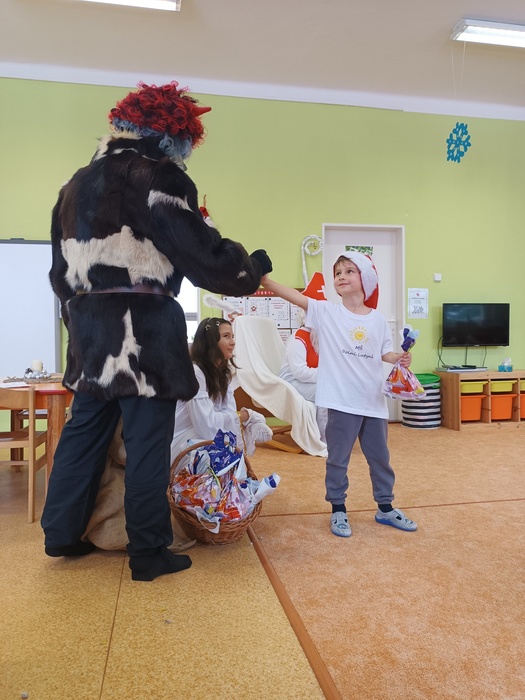 A je to tady. V pátek 1.12.2023 zacinkal v naší „Sluníčkové mateřské škole“ zvoneček. Kdopak to za námi přišel? Přece očekáváná vzácná návštěva Mikuláš, Anděl a Čertík.