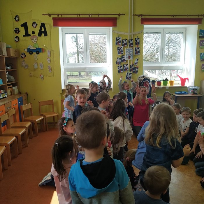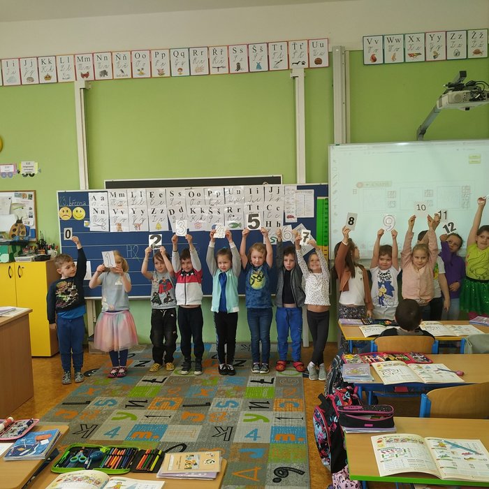 Ve čtvrtek 23. 3. 2023 navštívili předškoláci MŠ Komenského 1009 a MŠ Věřňovice 1. třídu ZŠ. Jelikož právě v mateřské škole probíhal barevný týden, tak naši předškoláčci všichni v modrém vyrazili za kamarády do 1. třídy ZŠ. Děti se seznámily s prostředím třídy, s paní učitelkou, pozdravily se s kamarády. Prvňáčci dětem ukázali různé aktivity, hry, kterými si zpříjemňují učení, jak v matematice, tak i v českém jazyce. Školáci dětem předvedli, jaká znají písmena, hráli slovní fotbal, poznávali číslice, sčítali a odčítali…I naši šikovní předškoláci měli možnost se do výuky zapojit. Děti si mohly například vyzkoušet sestavit číselnou řadu. Za svoji snahu byly děti odměněny krásnou medailí s nápisem „Škola volá“. Děkujeme paní učitelce Trachové za krásný program, který pro děti připravila. Všichni jsme si příjemné dopoledne užili a těšíme se zase na další návštěvu.
