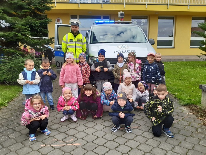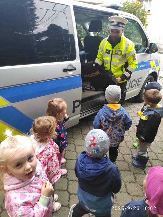 V pátek 26. září 2025 za námi do mateřské školy přijel pan policista. Děti měly možnost prohlédnout si policejní auto v přední i zadní části.