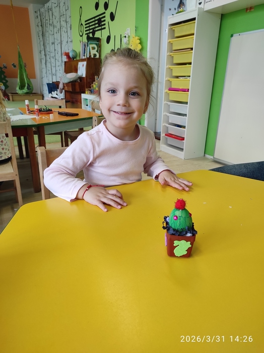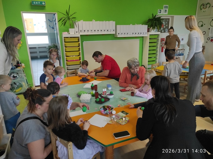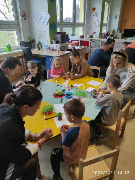 V úterý 31.3. 2026 proběhlo v mateřské škole ve třídě Berušek milé předvelikonoční tvoření s rodiči. Dopoledne si děti samy nabarvily vyfouknutá vajíčka, která pak odpoledne společně s rodiči nebo prarodiči proměnily v originální kaktusy v květináčích. Děti s nadšením zdobily, lepily, malovaly i kreslily a vznikla tak spousta krásných