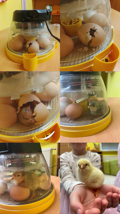zajímavého vzdělávacího projektu s názvem „Líhnutí kuřátek“, který dětem přiblížil