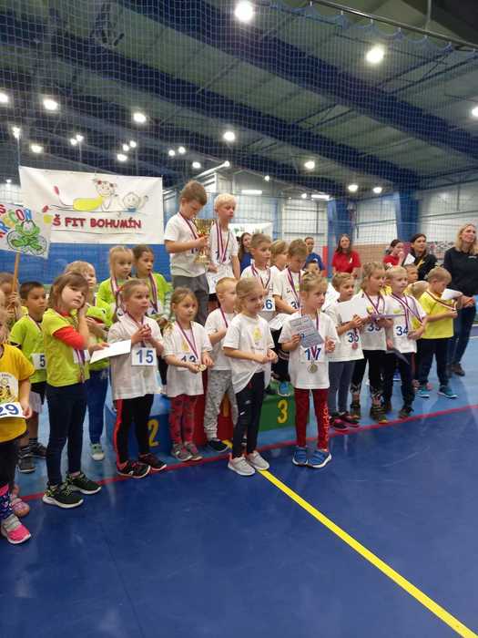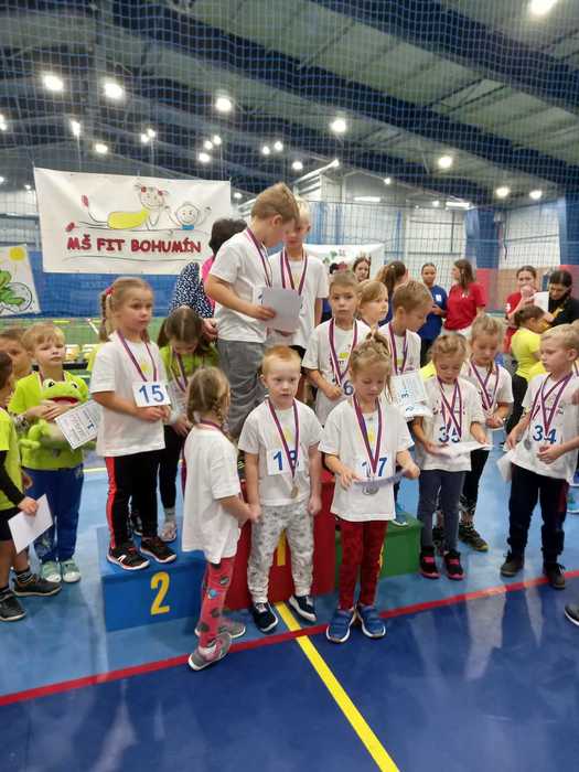 Každá MŠ vyslala 6 závodníků. Naše sestava ve složení Aneta Pietraszová, Malvína Pomklová, Anna Kmecová, Martin Oslizlok, Tomáš Křístek a Ondřej Mžik se nenechala zahanbit a podala krásné výkony, z kterých cinkaly medaile. Martin Oslizlok 1.místo ve skoku z místa. Ondřej Mžik 1. místo v hodu medicinbalem. Anna Kmecová 2. místo v běhu přes překážky.