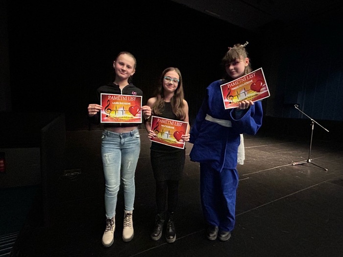 Všichni vystupující získali za účast v 1. kole pamětní list a 2 vstupenky na finále soutěže. Děkujeme za úspěšnou reprezentaci naší školy a budeme se těšit na finále!
