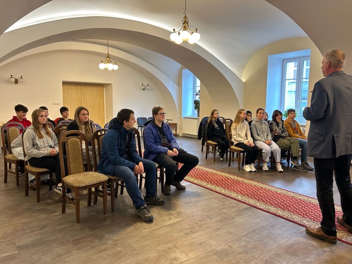 V pondělí 7. 10. 2024 a ve čtvrtek 10. 10. 2024 se naši děváťáci ze ZŠ A. Jiráska z Dolní Lutyně setkali s panem starostou Mgr. Pavlem Buzkem na obecním úřadě. Studenti se dozvěděli, jaký je rozdíl mezi státní správou a samosprávou, zahráli si na hlasování zastupitelstva, zvolili novou radu obce, starostu a místostarostu. Studenty zajímala např. historie obce, rozpočet na příští rok a investice. V závěru besedy žáci podávali návrhy, co jim v obci chybí. Velké poděkování patří panu starostovi, že si na studenty, kterým se beseda velmi líbila, našel čas.