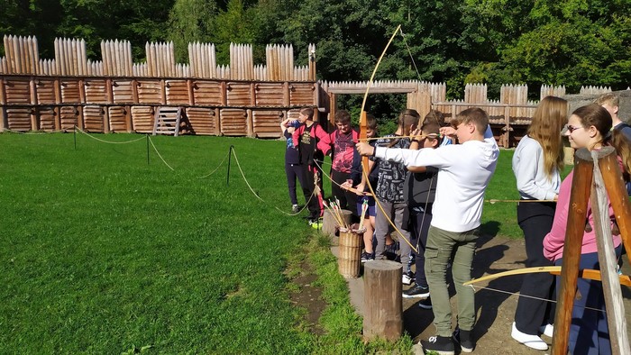 V úterý 26. září se žáci sedmého ročníku vydali na dějepisně-přírodopisnou exkurzi do Chotěbuze. Nejprve navštívili archeopark, kde pro ně byl připraven výukový program s průvodkyní o každodenním životě Slovanů. Ve venkovní části areálu si prošli slovanské hradiště, prozkoumali zemnice a polozemnice a vyzkoušeli si střelbu z luku, mletí obilí na žernovu, psaní na voskové tabulky nebo různé hry. Ve vnitřní části se seznámili s životem lidí na hradišti podle různých archeologických nálezů. Nově získané znalosti si poté ověřili v závěrečném kvízu. Poté následoval přesun do nedalekého Rybího domu, kde si žáci prohlídli obří akvária s našimi i cizokrajnými zástupci sladkovodních ryb. Viděli tu např. obří kapry, štiky, candáty, sumce albíny nebo také rostlinožravou piraňu, rejnoky či obojživelníky axolotly. Exkurzi jsme si i díky skvělému počasí užili a dozvěděli se spoustu užitečných informací.