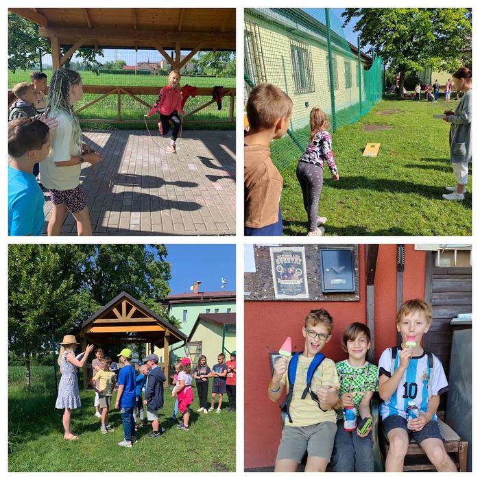 Ve středu 5. 6. jsme také na ZŠ Zbytky oslavili Den dětí. Od rána probíhaly soutěže družstev, děti soutěžily v pěti disciplínách. Všichni se moc snažili, sbírali body pro svůj tým. Vítěz však může být jen jeden. Po vyhlášení výsledků a rozdání cen jsme šli všichni na nanuk. Poté ještě zbylo trochu času na volnou zábavu na školním hřišti. Počasí nám přálo a věříme, že si Den dětí všichni užili.