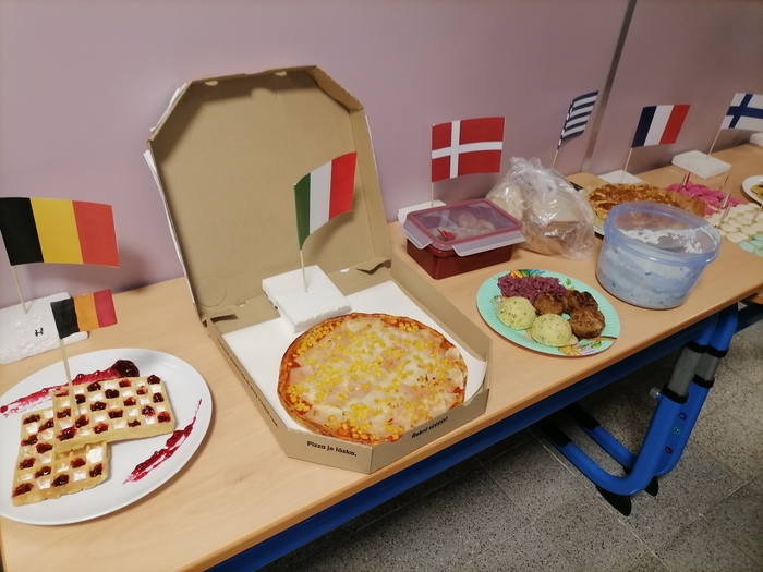 Žáci se rozdělili do skupin a vylosovali si stát, který prezentovali (Německo, Francie, Dánsko, Finsko, Řecko, Španělsko, Itálie a Belgie). Vyrobili vlajky, oblékli se do barev charakteristických pro stát, připravili si prezentace a typické jídlo.