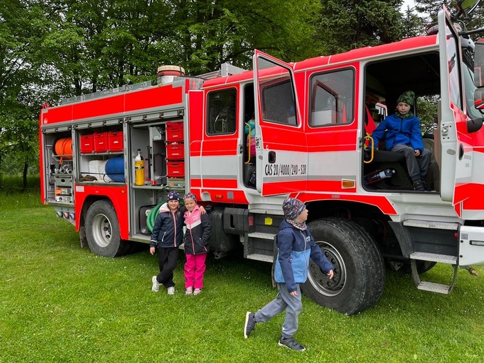 Také na cestě zpět do Neradu a na Zbytky měli cyklisté policejní a hasičský doprovod. Všichni jsme si tuto akci užili.