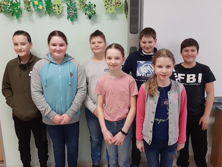 Soutěžní družstvo 6. B – Humlíčková Adéla, Bielená Leona, Válková Barbora, Babinski Tomáš, Šlachta Tomáš, Lukosz Dominik, Fronc Alex