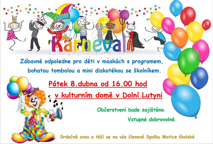 Pátek 8. dubna od 16.00 hod v kulturním domě v Dolní Lutyni
