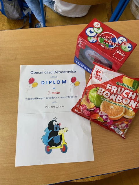 V pátek 14.října se naši prvňáčci zúčastnili Koloběžkových závodů pod záštitou obce Dětmarovice a „vykoloběžkovali“ si krásné 3. místo za ZŠ A. Jiráska Dolní Lutyně. Odměnu za své výkony získali všichni bez rozdílu. Mezi naše nejlepší závodnice patřily Katka Pátrová (2.místo) a Nela Semerová (3. místo)