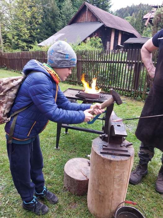 vyzkoušet i práci kováře. Vlastnoručně jsme si ukovali hřebíky a někteří i háčky. Zjistili jsme, že