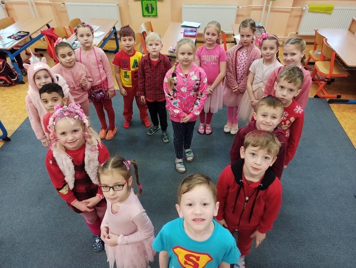 oblékli pestrou škálu věcí v růžové a červené barvě. A že jich bylo. Třídy totiž mezi sebou soutěžily o