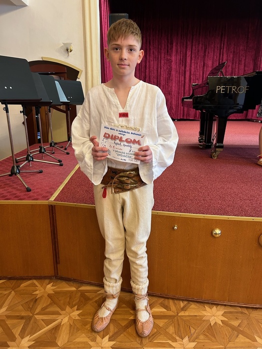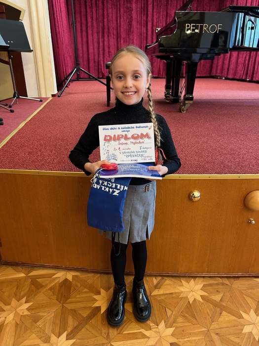 hudební um a Anna Ptošková z 3. B si s písněmi Od Skřečuňa cesta długo a Kołomajka mik,