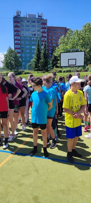 Ve středu 15.5. se uskutečnil další ročník tradičního atletického závodu ve čtyřboji, který se opět konal na atletickém oválu při ZŠ K. Dvořáčka v Orlové. Mladší (6.+7. třída) a starší (8.+9. třída) žáci a žákyně si poměřili své síly v běhu na 60m, hodu míčkem/vrhu koulí, běhu na 600/800/1000m a skoku vysokém/do dálky. Celkem se sešli zástupci ze 7 okolních škol. Naši školu reprezentovali jen mladší žáci a žákyně ve složení Laura Šestáková, Ema Elisabeth Goczalová, Valerie Karolína Plevová, Saša Strachová, Anežka Bystroňová, Ondřej Světlík, Marek Prokop, Jindřich Sebroň, Jan Reimann, Matěj Bura. Bojovali statečně, předvedli to nejlepší co uměli, ale na vítězství to bohužel nestačilo. Z celkového počtu se chlapci umístili na 7. místě, děvčata na 6.