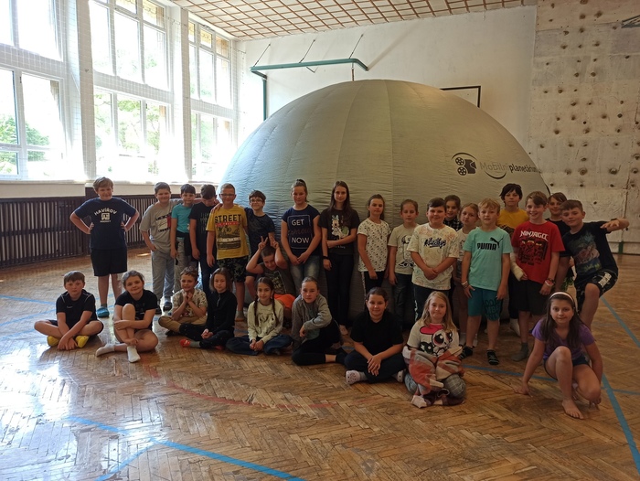 V měsíci červnu měly děti z MŠ Nerad, 2. a 4. třídy možnost zažít výukový program v planetáriu a nemusely kvůli tomu nikam jezdit. Mobilní planetárium totiž přijelo za námi. Po jeden celý den ho lektor rozložil přímo v naší tělocvičně.