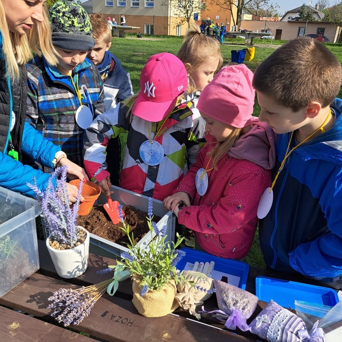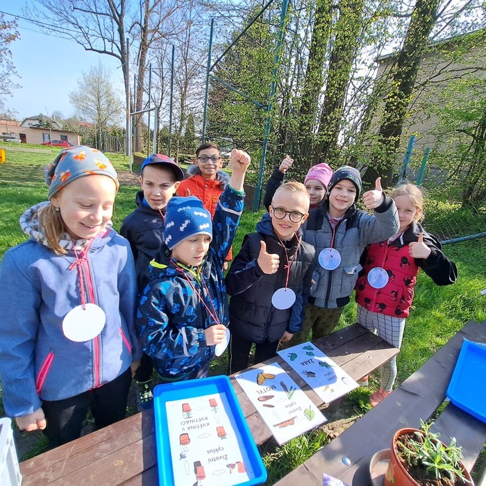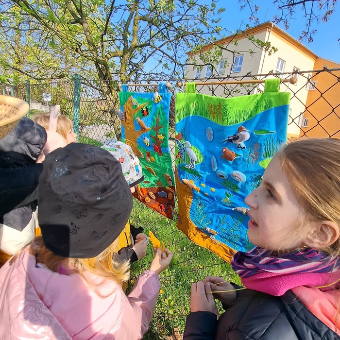 V pátek 28.4. ráno na školní zahradě čekalo na malé ekology nemilé překvapení. Ze zahrady se stala skládka odpadů. Aby mohli pokračovat, museli provést správnou recyklaci. Potébyli rozděleni do týmů a čekala na ně stanoviště s různými zajímavými úkoly. Jako například sázení levandulí, modelování z eko plastelíny, poznávání rostlin a stromů, chytání ryb, třídění živočichů z různých ekosystémů a nechyběly také sportovní aktivity.