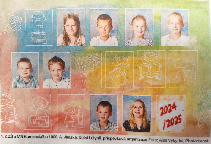 V příloze Prvňáčci Mladé fronty DNES vyšla tabla našich prvňáčků. Letos usedlo do lavic v Moravskoslezském kraji 12 900 dětí, což je téměř o 500 více než v loňském roce. Na naší škole přivítali učitelé 57 prvňáčků, kteří se s nadšením pustili do svého nového školního dobrodružství. Našim nejmenším přejeme úspěšný start do jejich školního života, plný radosti z objevování a nových přátelství. Ať jsou jim školní léta naplněna nadšením pro učení a každodenním úsměvem.
