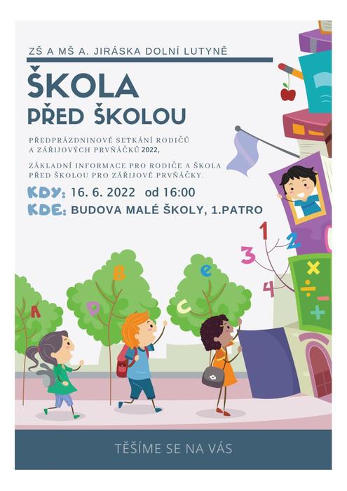 Předprázdninové setkání rodičů a budoucích prvňáčků dne 16.6.2022 od 16 hodin v budově malé školy.