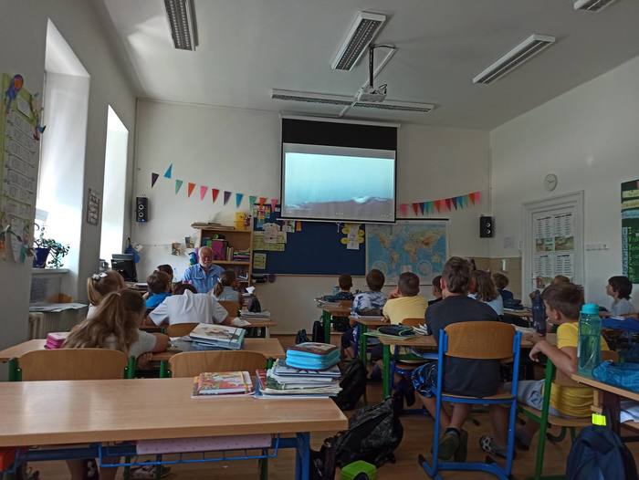 Poslední hodinou vlastivědy ve 4. třídě bylo na téma zámořských objevů a kdo by mohl o zámořských objevech povídat lépe než ten, který velkou část svého života strávil na vlnách moří a oceánů. Čestný obyvatel Dolní Lutyně, pan Richard Konkolski nám o svém životě přišel nejen povyprávět, ale doslova děti vtáhl na svou loď. Videoukázkami z cest poutavě vyprávěl svůj příběh o dobrodružství na světových soutěžích a plavbách kolem světa. Velice si ceníme ochoty a vstřícnosti pana Konkolského, který na závěr dětem věnoval svůj autobiografický komiks s vlastním podpisem.