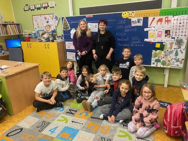 V pátek 1. prosince nás navštívily pracovnice kočičího útulku – KOČKY – BOHUMÍN. Paní Kocurová se svou kolegyní děti seznámily s náplní práce v útulku a velice ochotně odpovídaly na zvídavé dotazy dětí. Největším zážitkem pro naše žáčky byla přítomnost dvou chlupatých kocourů, nejen jim, je útulek momentálně dočasným domovem.