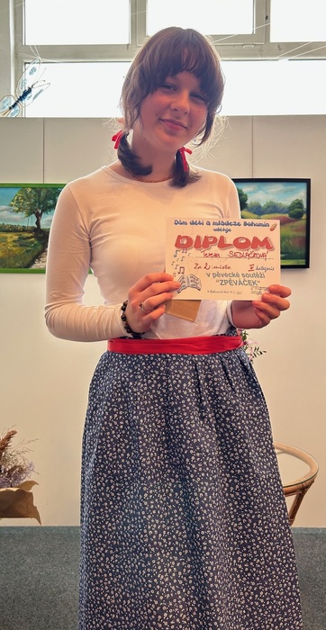 Tereza Sedláčková s písněmi Za stodołami zakvitnyła rež a Staro baba dycki dudle vyzpívala krásné 2. místo.